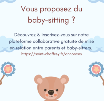 Découvrez la plateforme collaborative de Saint-Chaffrey qui permet aux baby-sitters de proposer leurs services auprès…