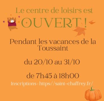 Le centre de loisirs du parc des Colombiers reste ouvert pendant les vacances de la Toussaint ! Du 20 au 31 octobre de…